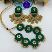 Looking for elegant choker sets? Your search ends here!! This beautiful choker set has 1. Pentagon shape stud earrings designed with taboz,...